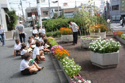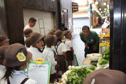 10月1日、町探検で鶴橋商店街に行きました。今回は、「秋」を見つけるという目的で、子どもたちが自分で見つけたり、お店の人に聞いてみたりしました。初めてのインタビューでドキドキしましたが、店の人が親切に教えてくれて、たくさん「秋」を見つけられました。