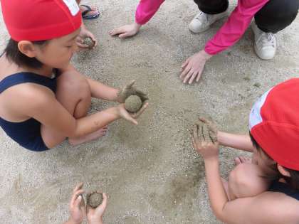 カップの形をかたどったり、どろだんごを作ったり、