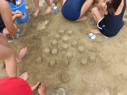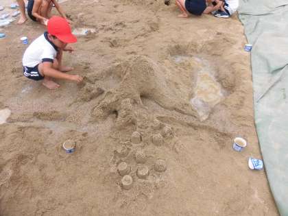 運動場の砂と水を使って、工夫して遊びました♪
