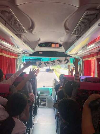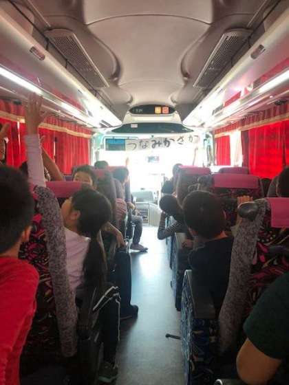 赤松SAエリアを出発し、再びバスレクで盛り上がっています。