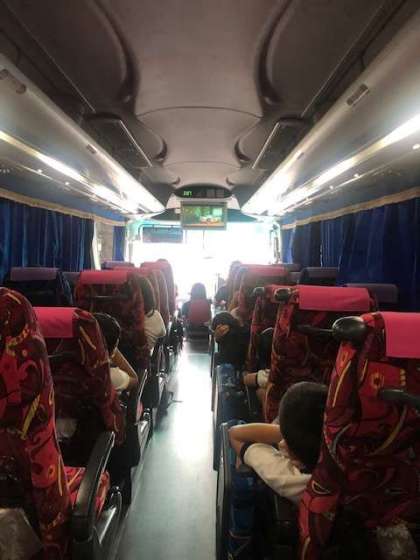 DVDを見たり寝ている子がいたり、少し疲れた様子ですが、もう少しで到着です。