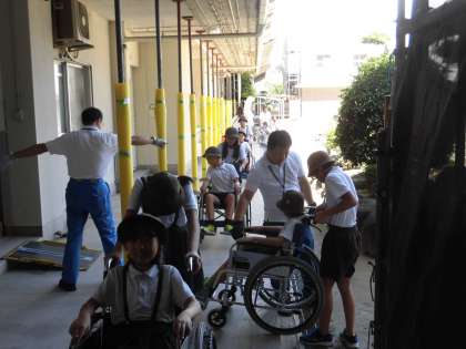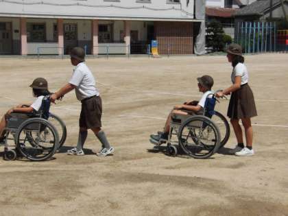 子どもたちは、思っていた以上に操作が難しかったり、一人なら通れる道も車いすとなると通れなく困ってしまうことを知ったり・・・