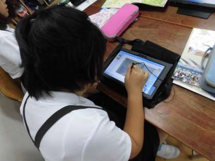 今日は、タブレットを使って地図から大阪市を探したり関空を探したりしました。