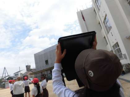 今日は、班ごとにタブレットで雲のようすを撮影し、