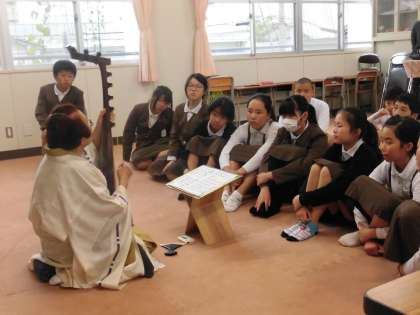 琵琶の演奏も聞かせていただきました。初めて聞く琵琶の音色と語りに子どもたちは感動していました。