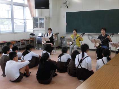 また、三味線の演奏を聞かせていただいたり、触らせていただいたりしたあと、子どもたちの知っている歌を三味線の伴奏に合わせて一緒に歌いました。