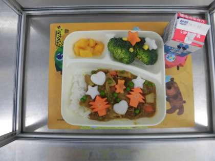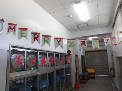 給食室では、クリスマスの飾りつけがとても可愛くなっていますよ♪