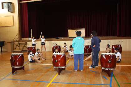 前回に引き続き、リズム打ちの練習をしました。太鼓の響きが力強い響きになってきました。締め太鼓と長銅太鼓の息も合ってきました。
