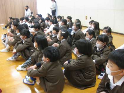 今日は1.2年生が鶴橋幼稚園へ行き、お相撲さんをお迎えしての「おすもう会」が開かれました。
