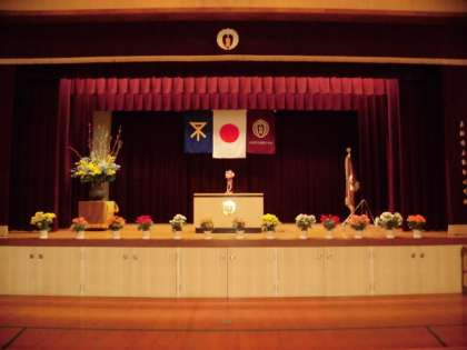 残念ながら入学式は延期になりましたが、入学式の講堂の様子です。