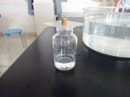 ビンを水で満たし、ビンの中の空気を追い出した後、
