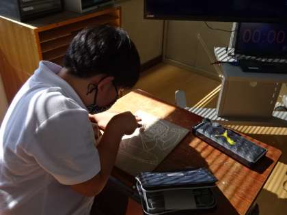 彫刻刀を使って、丁寧に彫っています。みんな集中していました。