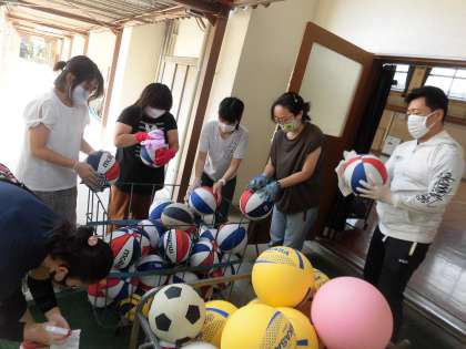 今日は、教室のほかに、体育の時間に使用したボールを消毒してくださいました。