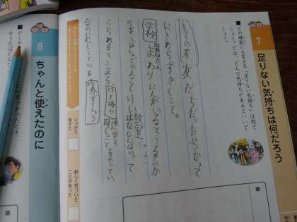 3年生の道徳では、「足りない気持ちは何だろう」という学習をしました。