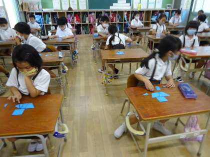 形の向きや方向、組み合わせを考えながら、見本通りの形を作ることができました。