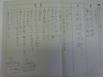 それぞれの良いところを考えたり、調べたりしながらプリントにまとめることができました。