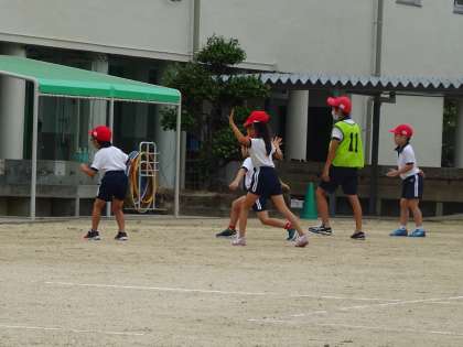 自己紹介をした後は、6年生が考えてくれた「だるまさんがころんだ」「ドッチボール」などをしました。1年生がたてわり班の6年生と一緒に遊ぶことは初めてです!お兄さんお姉さんと一緒に活動できることがとても嬉しかったようで、にこにこ笑顔で活動していました(^^)