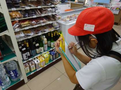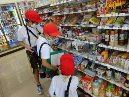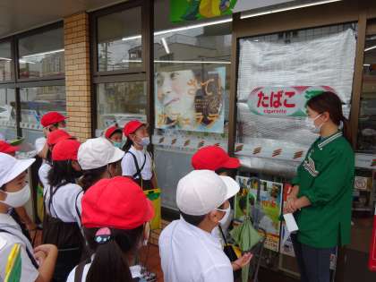 今日は3年生が、学校近くのコンビニへ社会見学に出かけました。