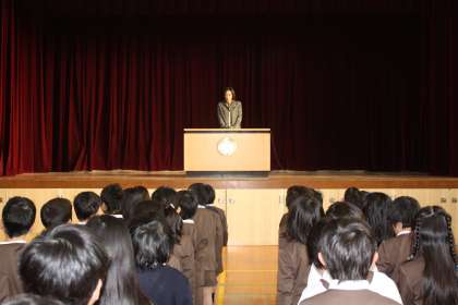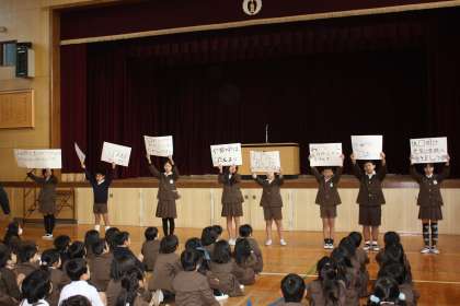 早いもので、今日で2学期も終了です。子どもたちは2学期をふり返りながら、これから迎える冬休みについて期待をふくらませていました。終業式後に、保健体育委員会からは、冬休みの健康についてのクイズがありました。クイズの答えをつなぎ合わせると「げ・ん・き・な・ふ・ゆ・や・す・み」というメッセージになりました。