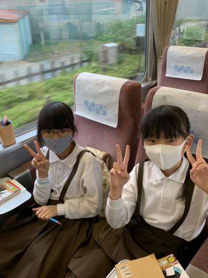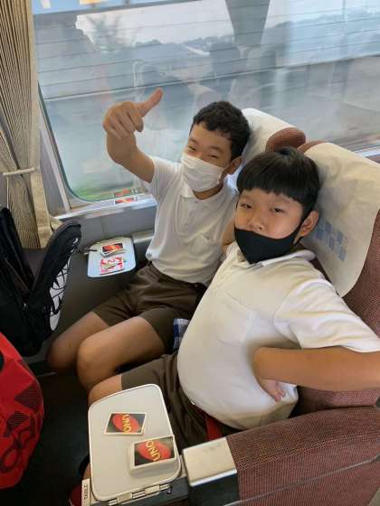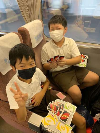 電車の中ではUNOで盛り上がったり、絵を描いたりしています。