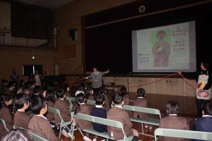 日本成人病予防協会から、子どもイキイキ食育チームの方々が来られて「バナナうんちで元気な子!」というテーマで話をしていただきました。“バナナうんち”を出すためには、