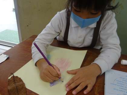 生活科の時間に、集めた「秋のもの」をつかって