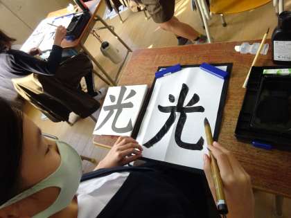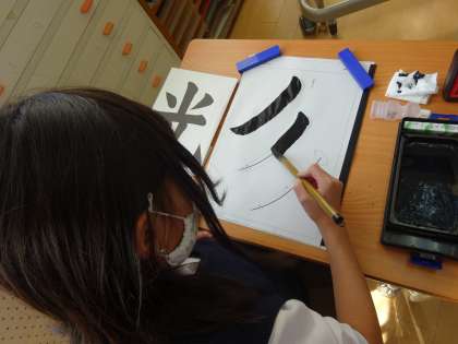 今まで習った「たて画」「横画」「点」「はらい」「曲がり」「はね」が合わさった漢字です。
