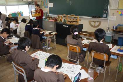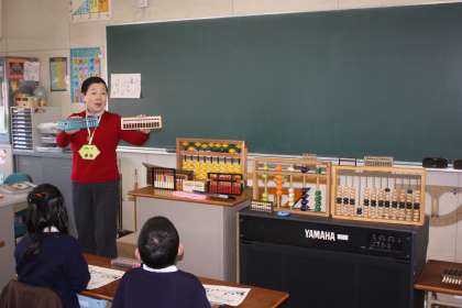 3年生は初めてのそろばん学習を行いました。講師の澤田先生の分かりやすいご指導で、子どもたちは楽しく熱心に、そろばん学習に取り組みました。