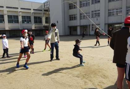 そして、昼休みには6年生からのお誘いがありました。金曜日の大なわ大会に向けて、うまく跳ぶ方法を教えてもらいました。6年生とのよい思い出ができました!