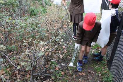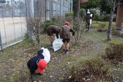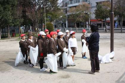 3年生は、地域をより良くするプロジェクトの一つとして「ごみ0手助けプロジェクト」を計画しました。毎週月曜日の総合的な学習の時間に、桃谷公園を中心にごみを拾います。管理作業員さんの至田さんに、事前にごみを学校へ持って帰ってきてよいか、分別の仕方はどうするのか、を教えていただいてから、今日の実施を迎えました。みんな熱心に公園のごみ拾いをしました。