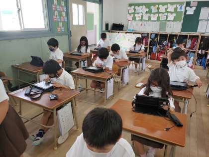 端末を使って、絵を描いたり、写真を撮ったりしました。これからの学習でたくさん使っていきます。