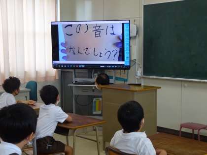 今日の児童集会は、「音あてクイズ」でした。全校児童が一か所に集まれないため、集会委員は毎週工夫をしながら集会の内容を計画しています。今日は、ICT機器をうまく活用して楽しいクイズを考えました。どの班も、耳を凝らして流れてくる音を聞いていました。