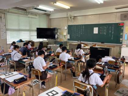 7月2日(金)の1・2時間目に毛筆の学習をしました。