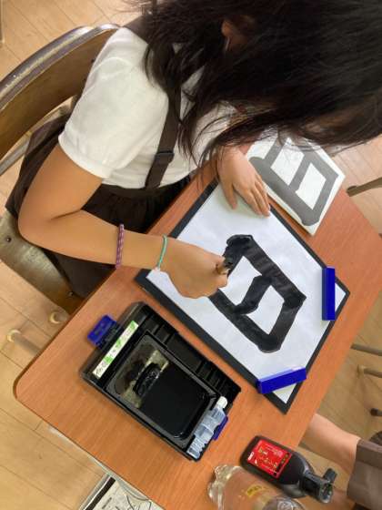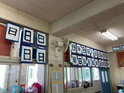 毛筆は、筆の持ち方、筆を運ぶ速さ、力の入れ具合、漢字のバランス等、書きながら注意することが山のようにあるのすが、子どもたちは口を閉じて、真剣に、そして慎重に書くことができました。