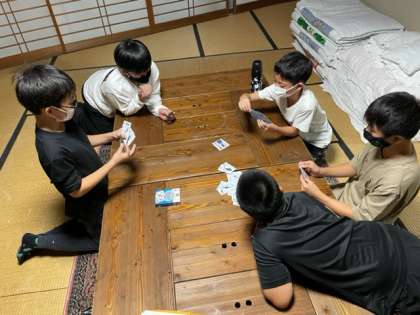 夕食まで時間がたっぷりあるので、UNOやトランプをしながら過ごしています!女の子の部屋ではおしゃべりタイム!