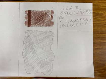 身近にあるものからあなたが愛を感じるものは?という問いかけに、それぞれが感じた「愛」を絵と文で表現することができました。