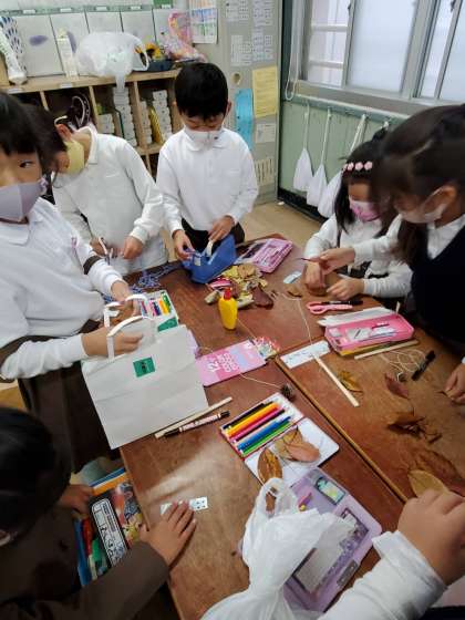 どんぐりや松ぼっくりなどの木の実や落ち葉で工夫して作りました。みんなで遊ぶのが楽しみですね。