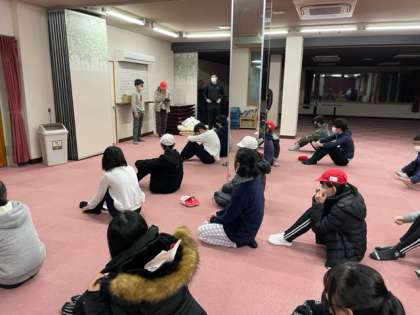 子ども達は眠たい目をこすりながら予定通り、6時半に大広間に集まりました。