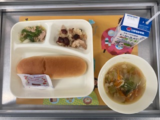 今日は鶏肉、金時豆、しめじの入った具だくさんの中華おこわでした♪