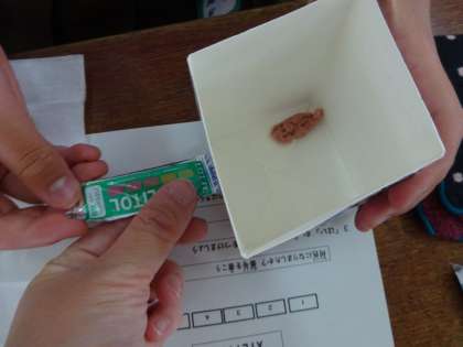 嚙んだガムの色を見て、自分の嚙む力を確認しましたよ(^^♪