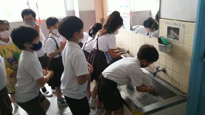 火曜日 3年生は書写の時間に初めての習字をしました。