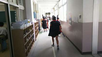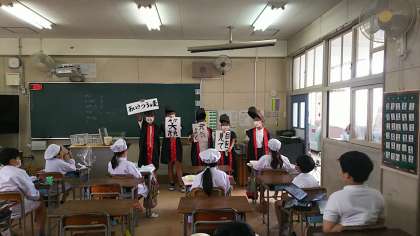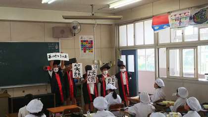 あいさつ運動の呼びかけを向上委員会はがんばっています。昨日は3・4年生、今日は5・6年生の部屋を訪問しました。