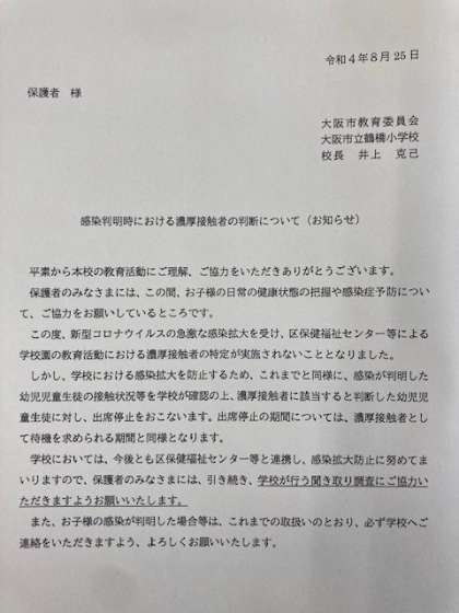 こちらの手紙につきましては、明日8月26日にお子様にお渡しさせていただきます。
