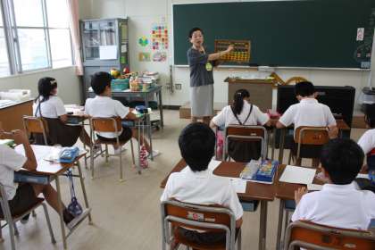 一学期最後のそろばん学習を行いました。繰り上がりと繰り下がりのある計算を練習しました。「10になるお友だち」という分かりやすい言い方で教えていただいたので、子どもたちも楽しく学習することができました。