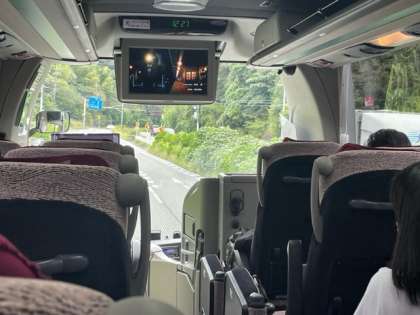 帰りのバスは鬼滅の刃、無限列車を見ています。