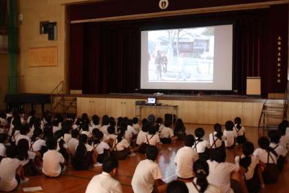 始業式の後、児童全員で地震と津波の避難についてのビデオを見て学習しました。