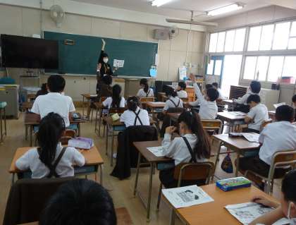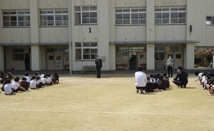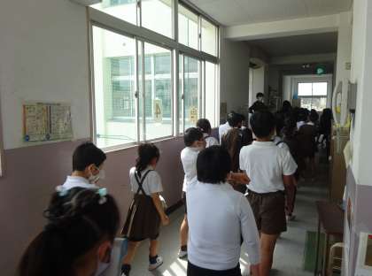 今日は避難訓練がありました。理科室から出火との想定で実施しました。火事から身を守るためには、煙を吸わないようにすることが大切だと学習し、口にハンカチを当てて素早く非難することができました。