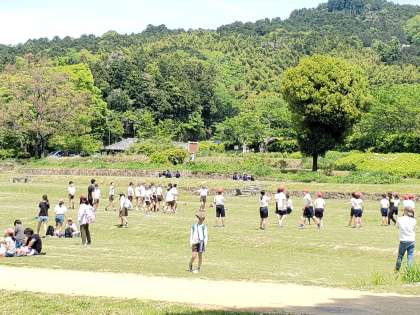 石舞台公園で出会った小学校とドッジボールをしました。みんなとても上手!