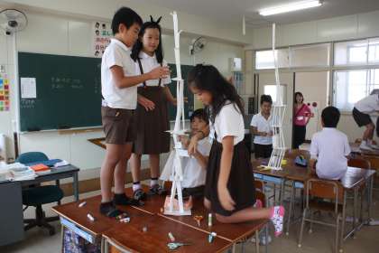 1時間目は、図工科で「どんどん積んで」を学習しました。画用紙を無駄なく使って、グループで高い塔を作っていきました。どのグループも作戦を立てて、高い塔ができるよう協力して活動することができました。