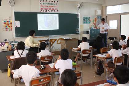 今日は、区役所の方にゲストティーチャーとして来ていただき、地震の概要を話していただきました。また、桃谷の町に大地震が起きた時に知っておかなければいけないことを、課題として、子どもたちに提示していただきました。子どもたちは真剣に話しを聞き、意欲を新たにしていました。